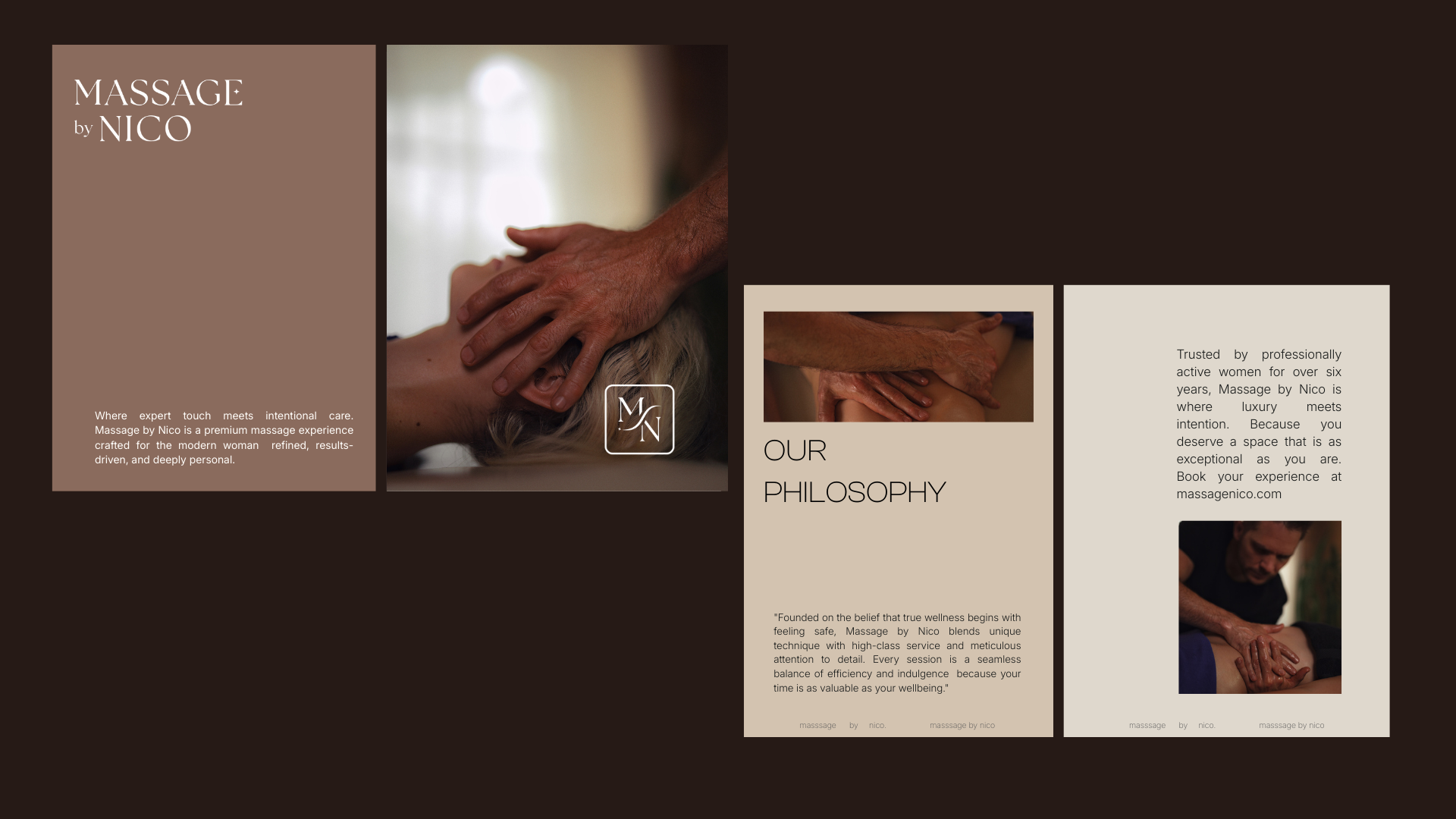 Massage by Nico is a high end, massage experience designed to feel safe, refined, and deeply restorative. With six years of experience and a loyal clientele of professionally active women, the brand stands for integrity, discretion, and exceptional attention to detail.